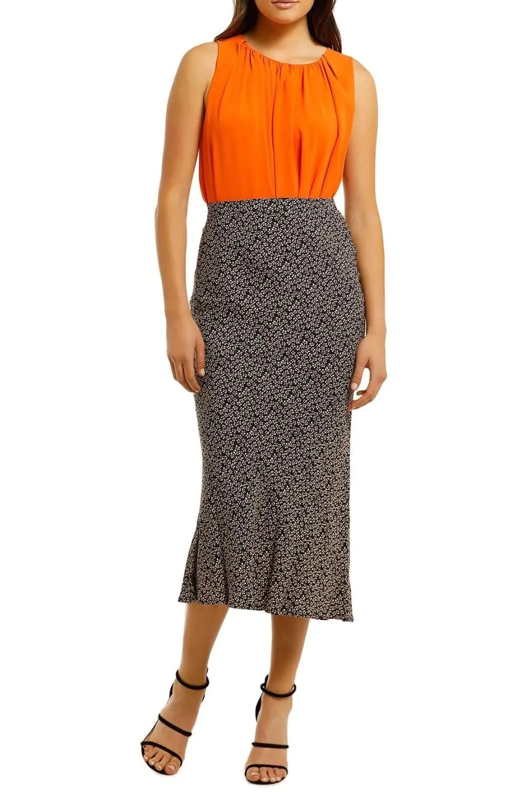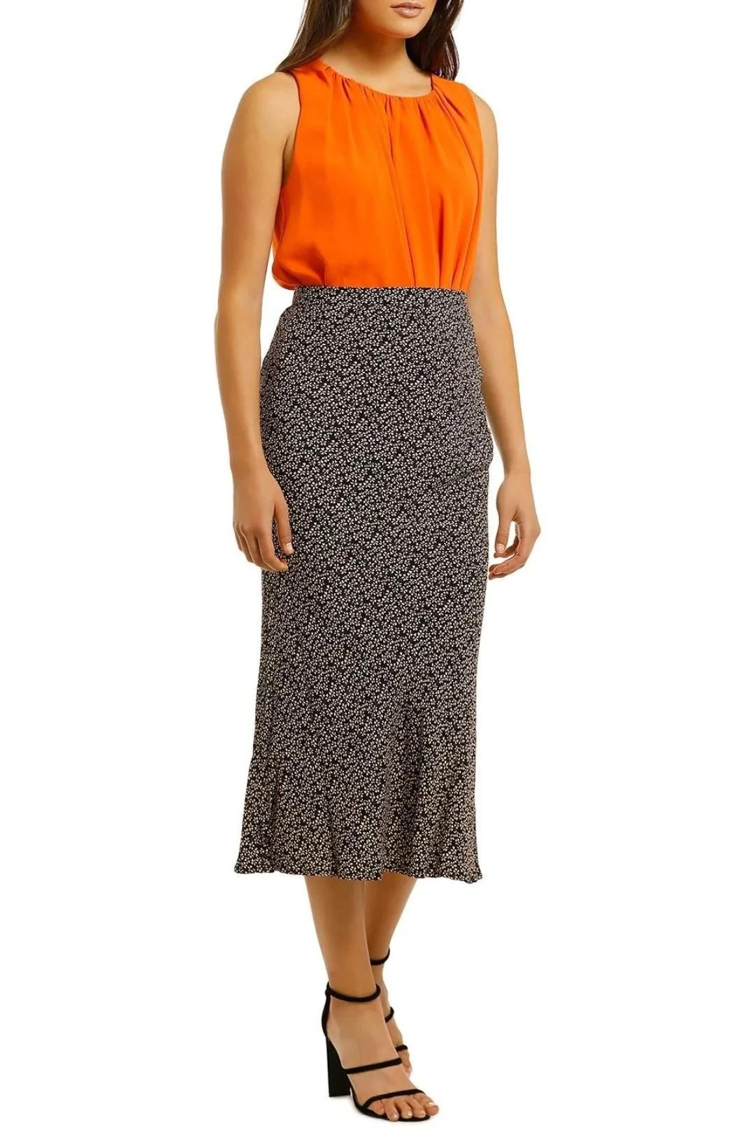 A classic midi skirt, the Alice skirt is cut in a simple slip silhouette with floral print and falls to a midi length. Flattering for all body types and perfect for date night.