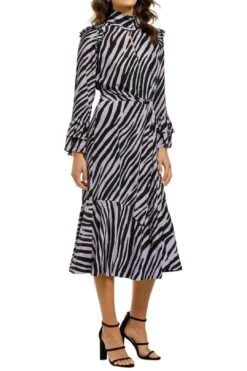 The Button-Down Midi Skirt features a tiger print design with a wide belt and side pockets. Dress up this edgy skirt for an upcoming luncheon or daytime event.