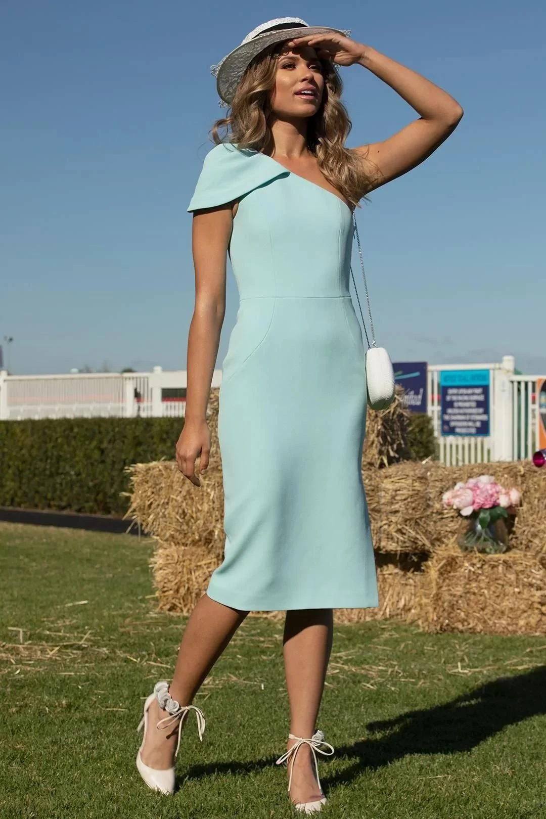 This dreamy blue midi by Rebecca Vallance is perfect for the racing season. Featuring a one-shouldered neckline and bodycon fit, it’s elegant and stylish.