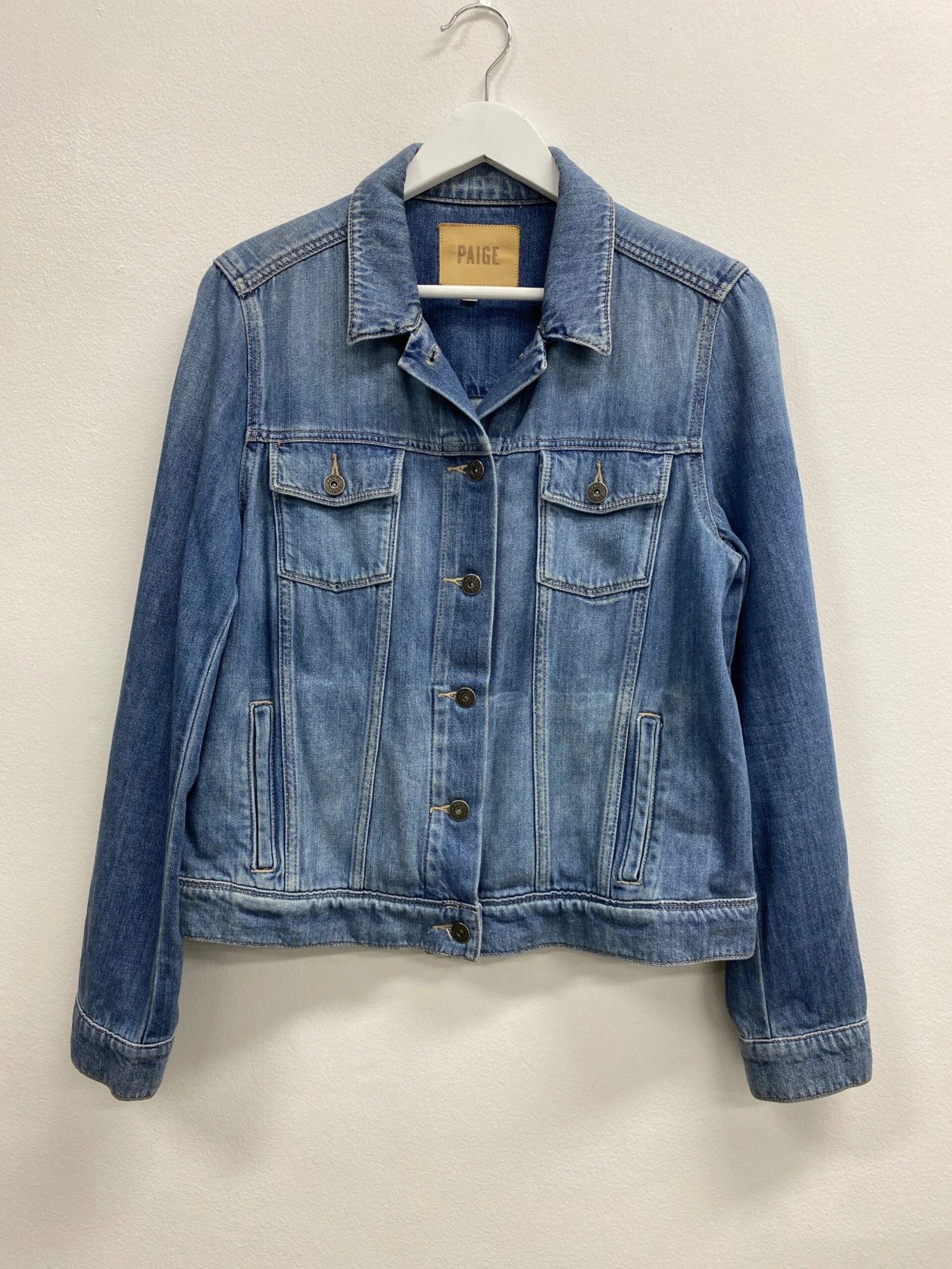 Looking for a stylish jacket that will instantly upgrade any outfit? Look no further than the versatile and chic Cropped Denim Jacket by Paige. This style features a point collar, long sleeves finished with two-button cuffs, and a button-flap chest pocket, perfect to wear on a weekend getaway.