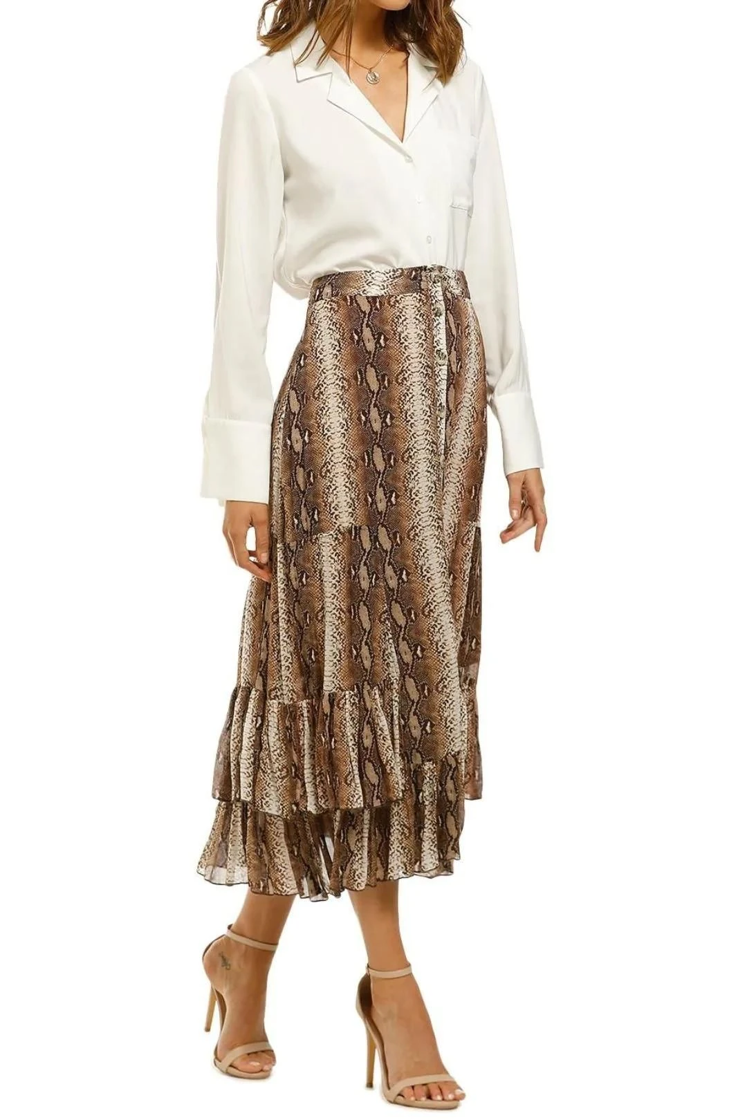 The Trelise Cooper Frill Me On Skirt features a waistband, centre-front buttons, midi length, and frills. Wear this to your next daytime event or add it to your work wardrobe.