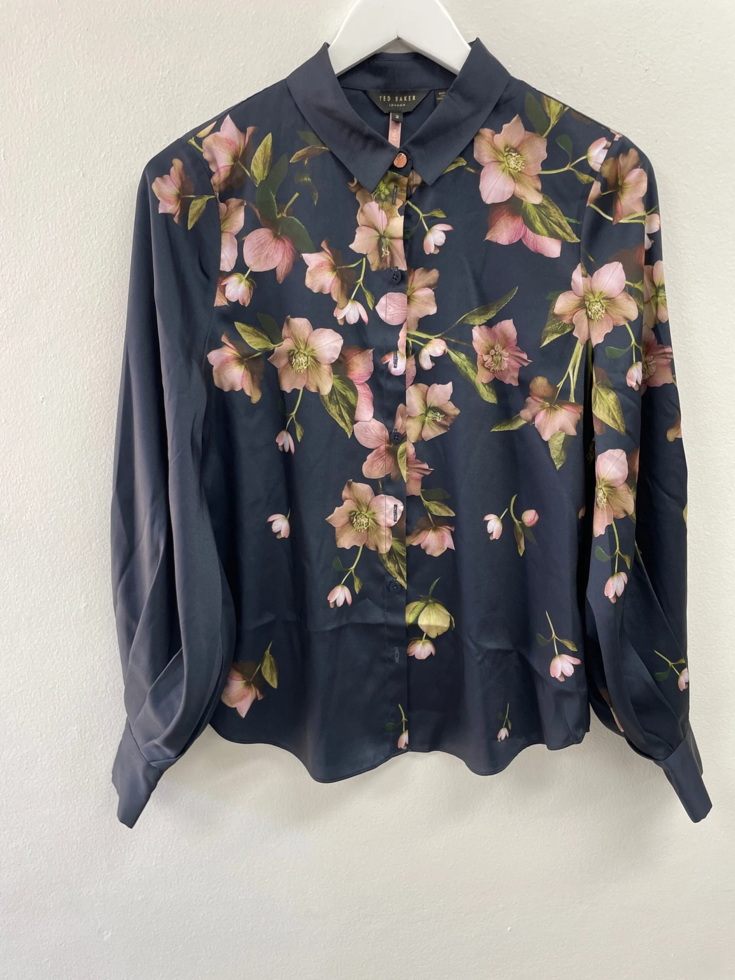 Let your look bloom with the Laniie Blouse in Navy floral. Featuring Ted Baker’s Arboretum print, it comes with billowing full sleeves, a curved hem that adds a feminine cut, and a silky finish that is sure to bring statement style to your daytime attire.