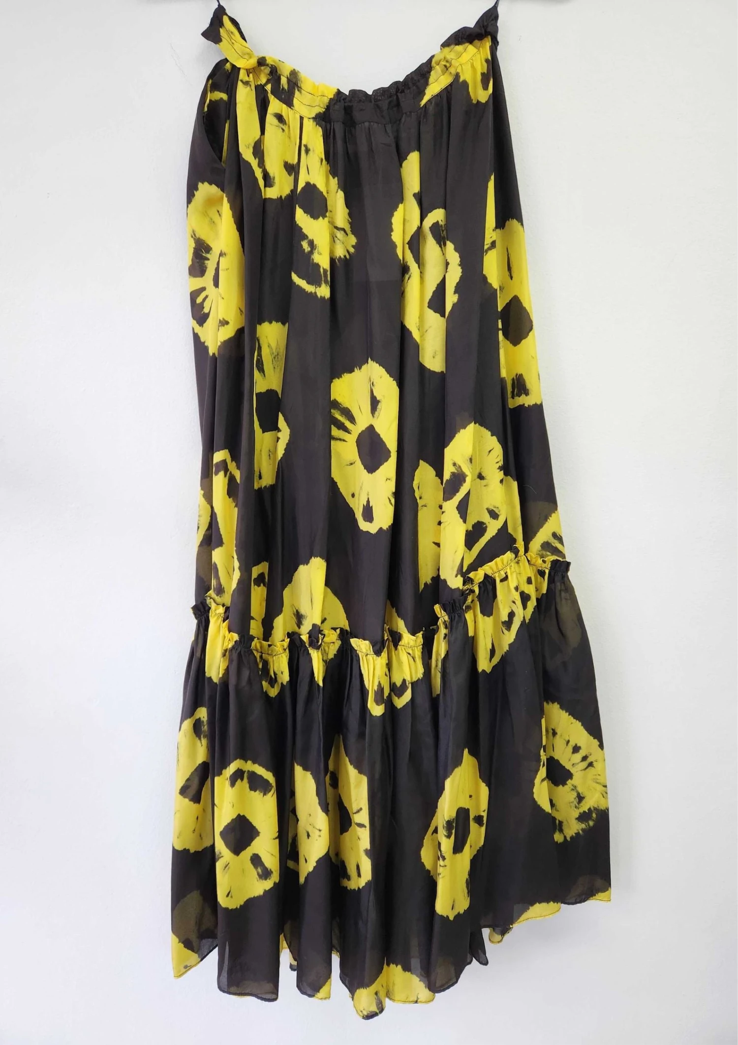 For ultimate resort dressing, wear the Lulu Ruffle Hem Skirt by Zimmermann for a relaxed, yet stylish outfit. This beach over-up features a frilled self-tie waist and drop hem in a quirky pineapple print.
