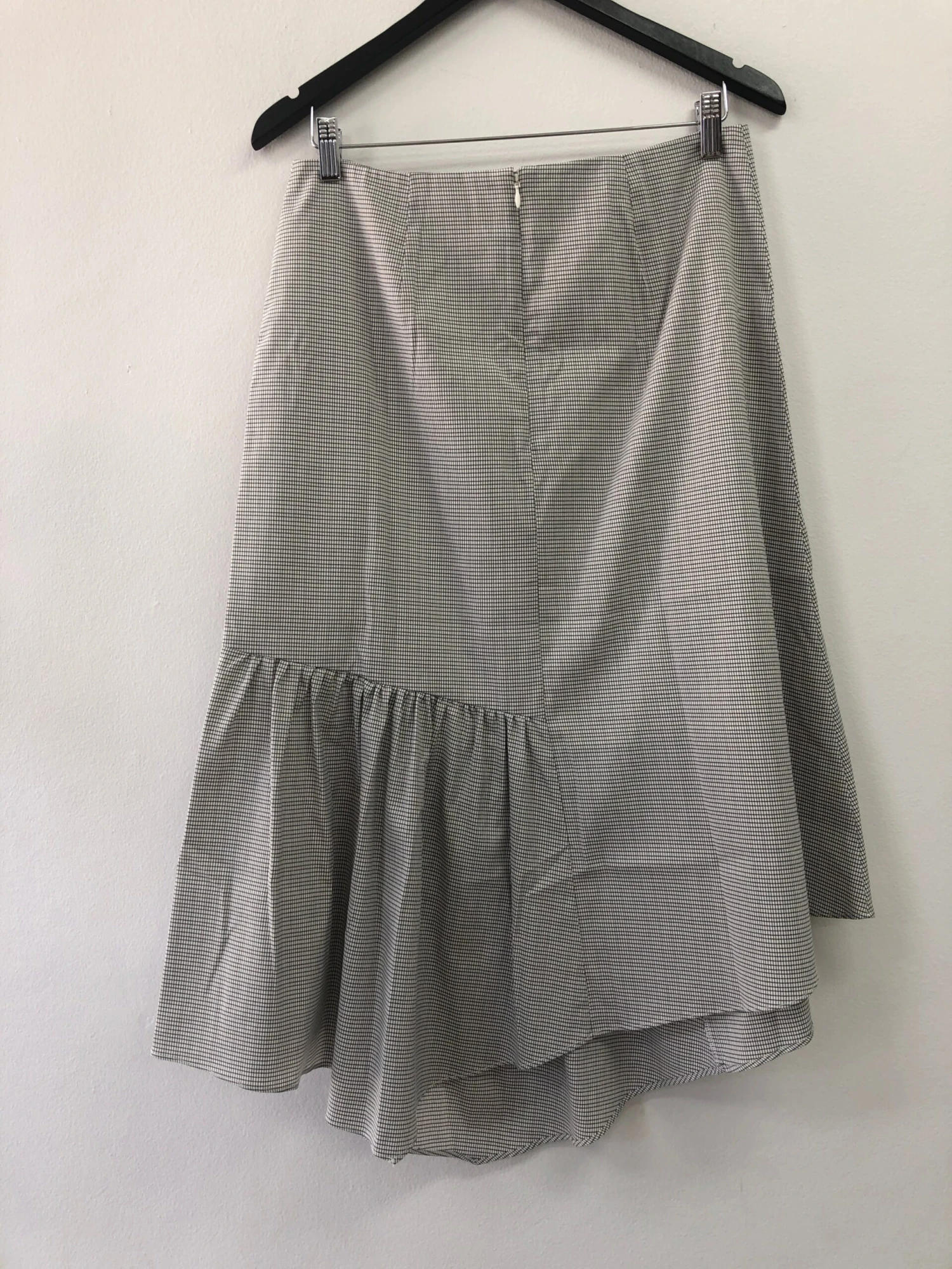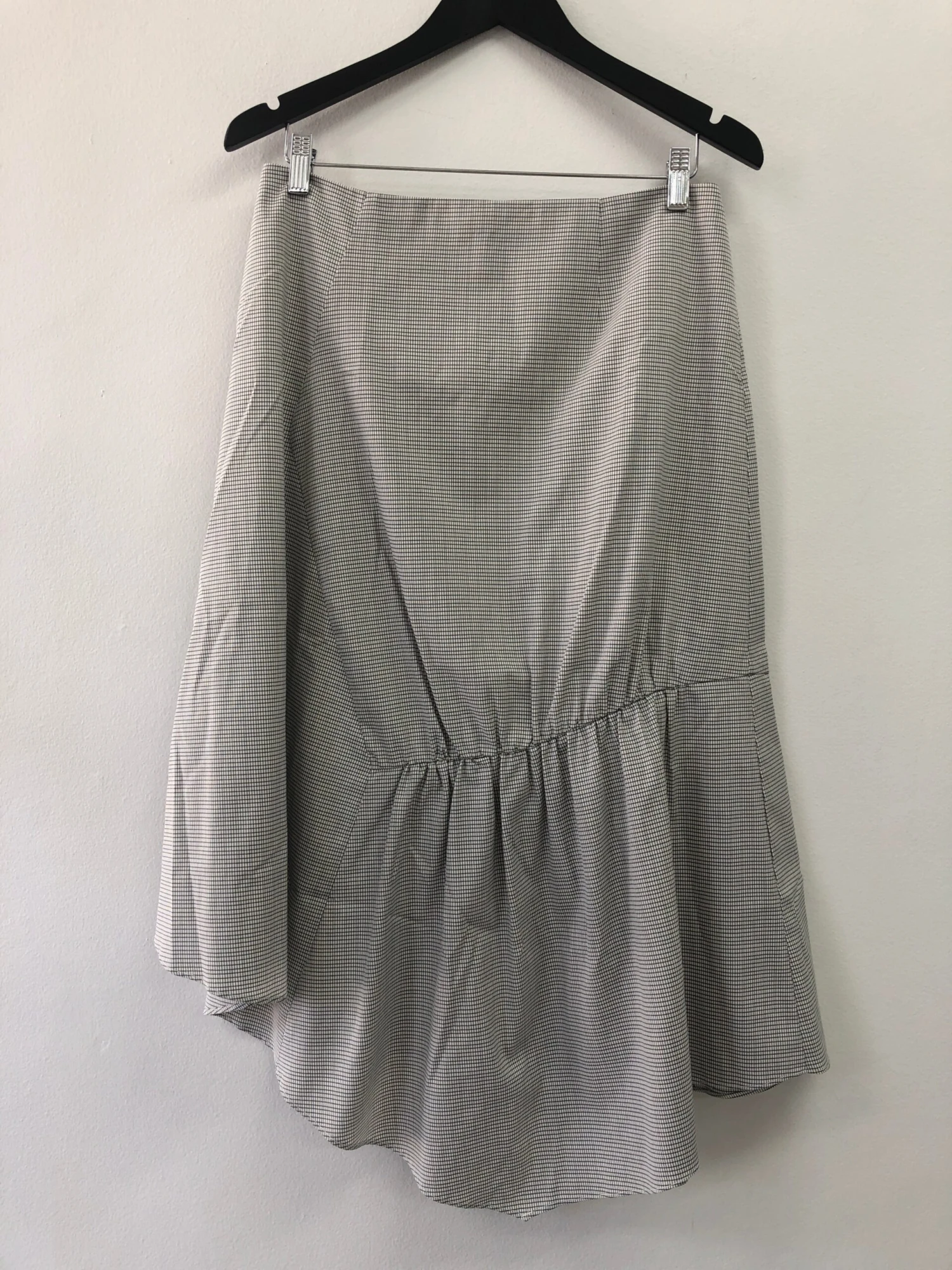Cut from a monochrome checked fabrication, the Martina Skirt from Elka Collective is the perfect Autumn Skirt as the season shift. It has an asymmetrical hemline and shirred seam gathering with centre-back zip and a-line silhouette.