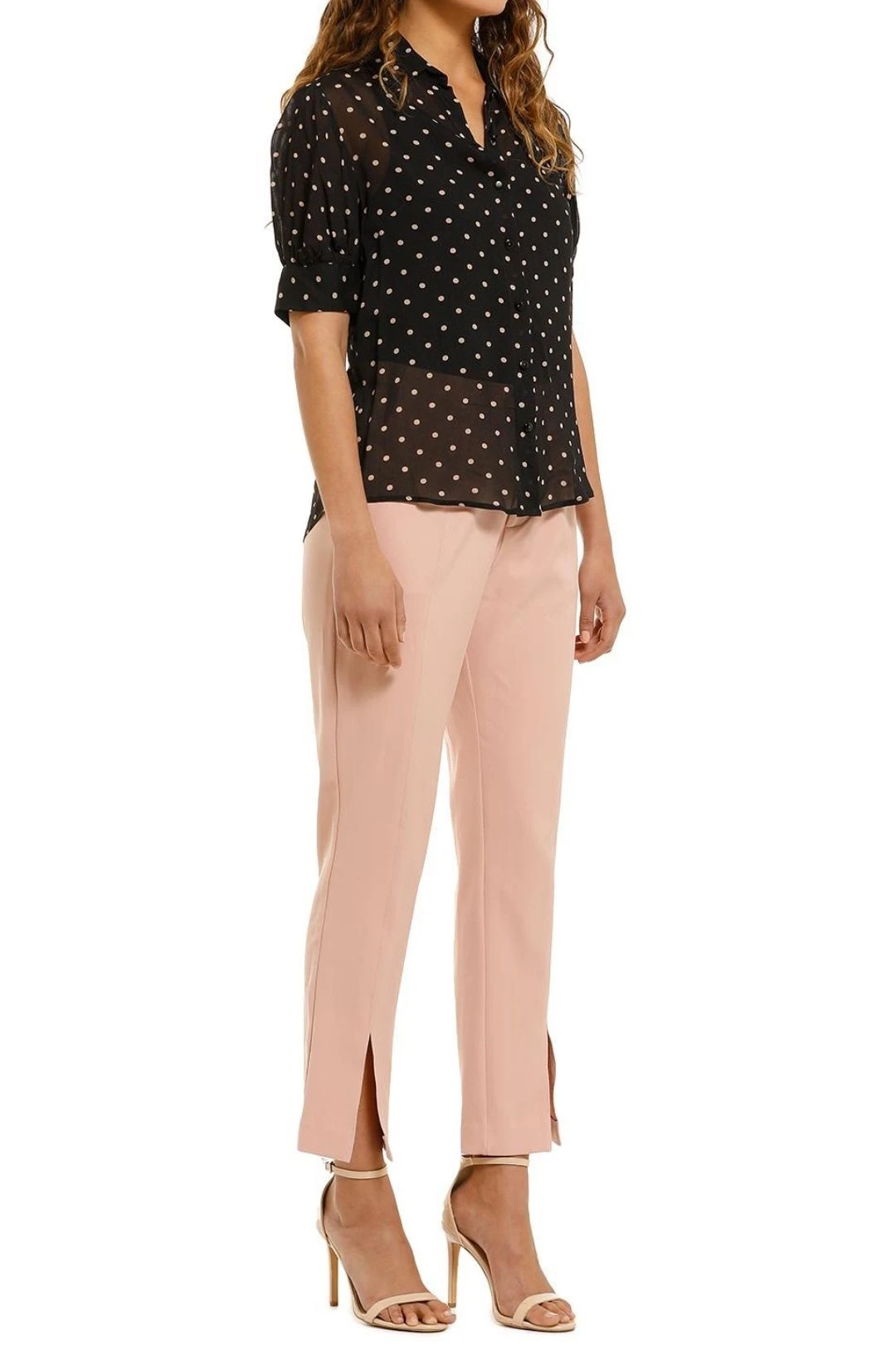 The Meg Shirt by Kate Sylvester is a versatile shirt that you can dress up or down! This black polka dot shirt is perfect for a casual brunch or dressed up for a date night!