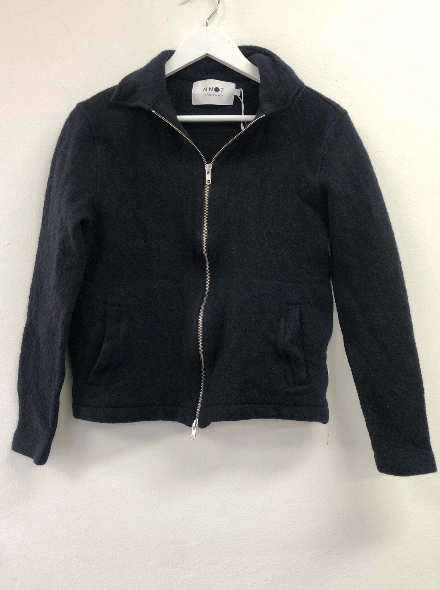 If you are looking for something stylish, but effortless, look no further than the Black Collared Ivan Jacket 6398 by NNO7. This lightweight jacket is crafted in boiled merino wool and designed with a sturdy two-way zipper and side pockets. Layer over shirts when going for a casual look.