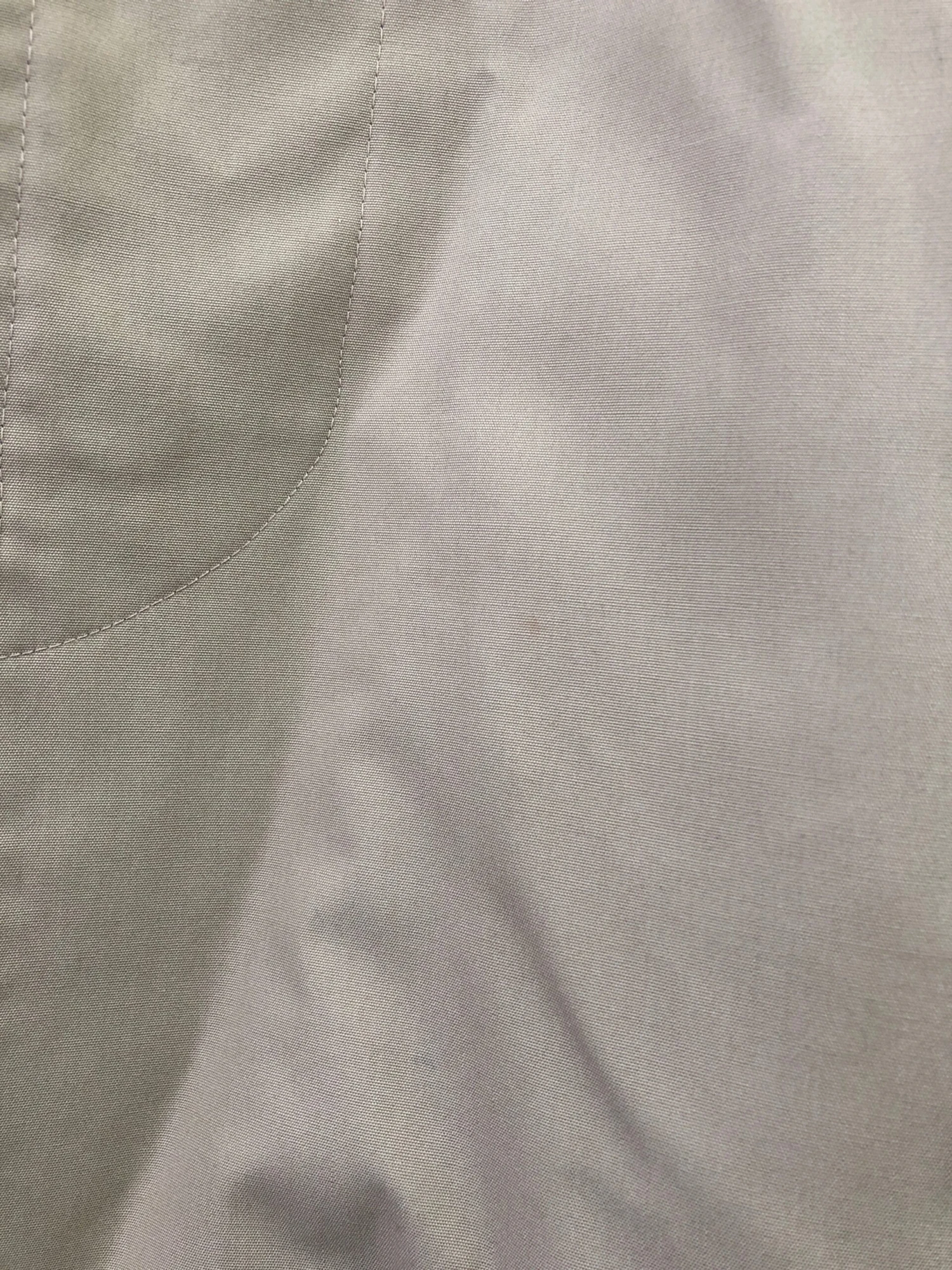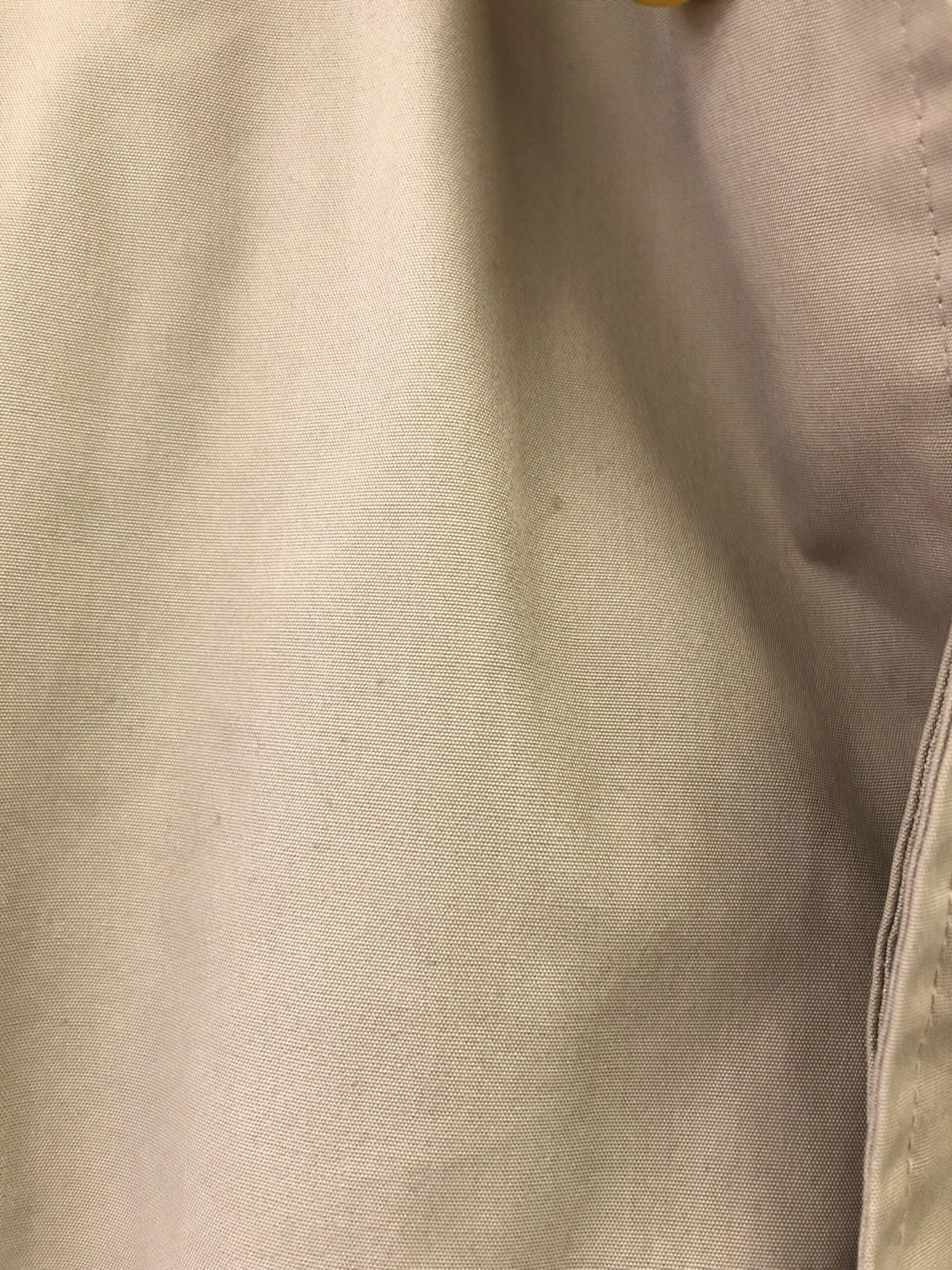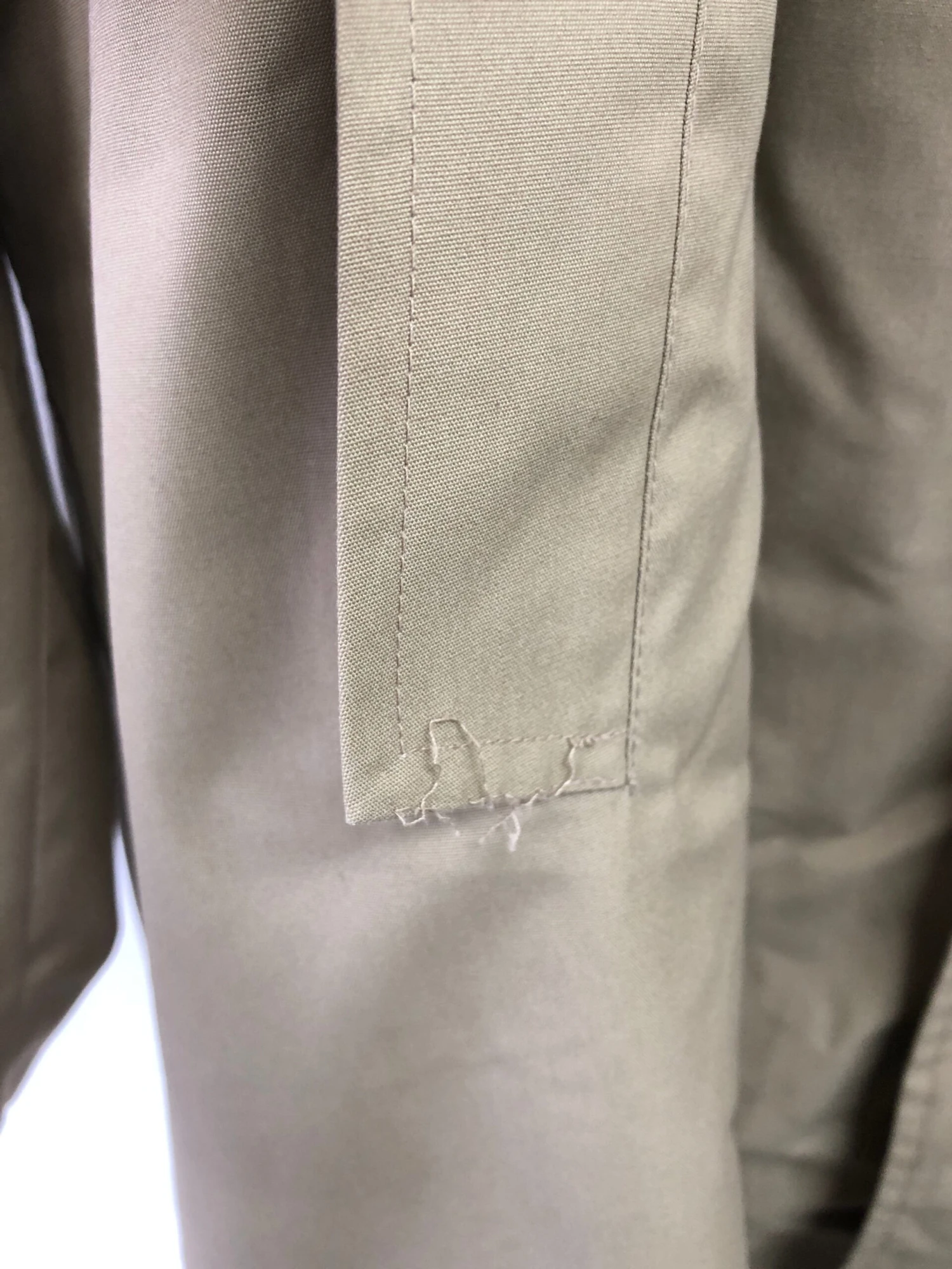 Stains on sleeves, loose thread/seams on front pocket and shoulder