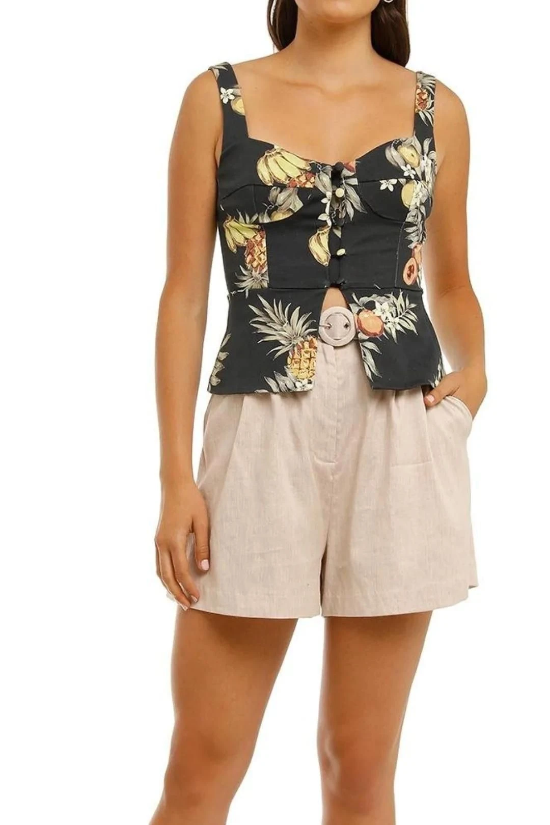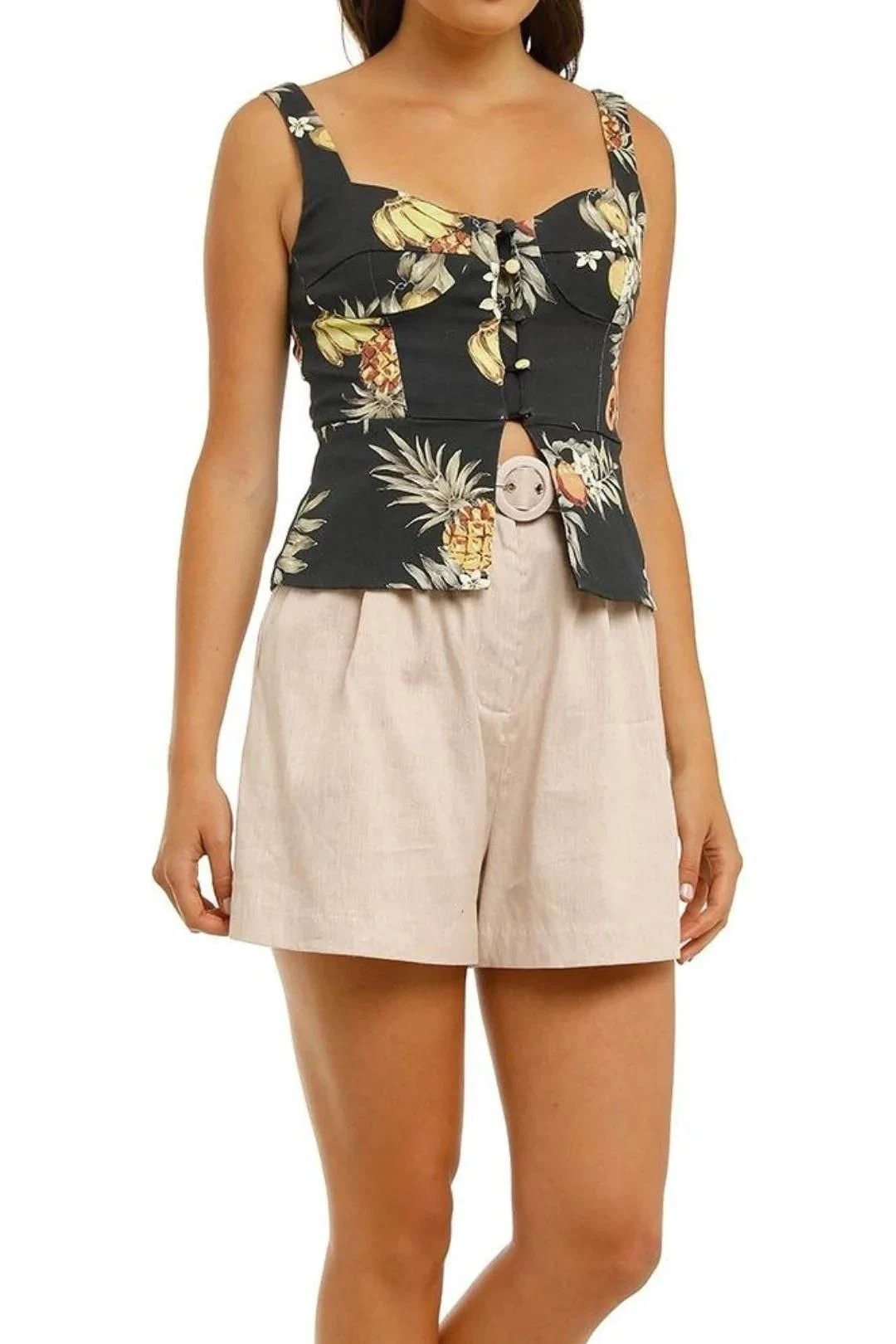 Jump into summer in this Pinacolada Bodice by Pashduchas! This chic tropical print top features a front split hemline that is perfect for a summer day out!