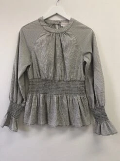 Ruched LS Check Grey Blouse
