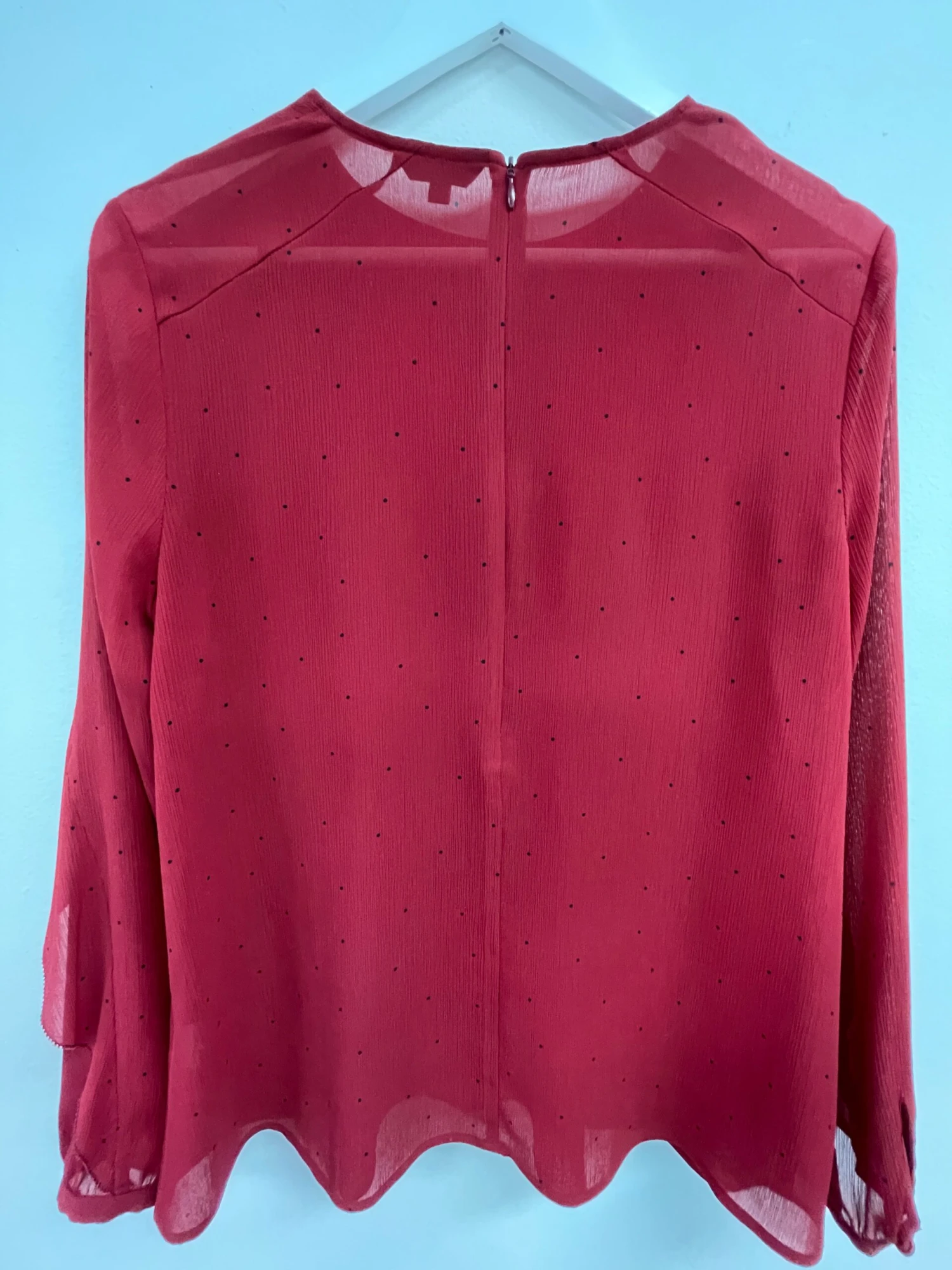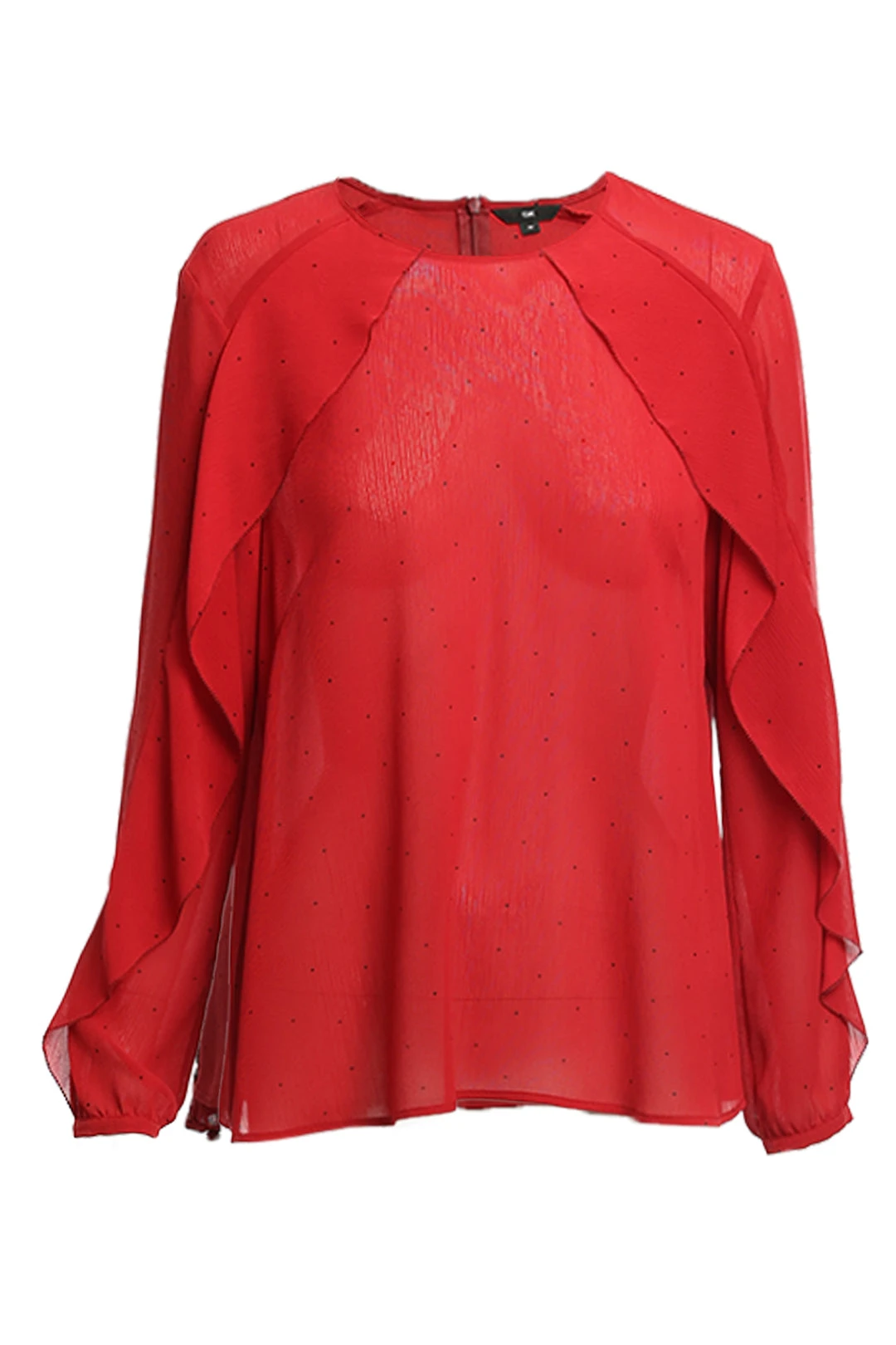 Prepare to turn heads in this amazing Red Blouse by Cue. This blouse features a round neckline, long semi-sheer sleeves with elasticated cuffs and an invisible centre back zip.