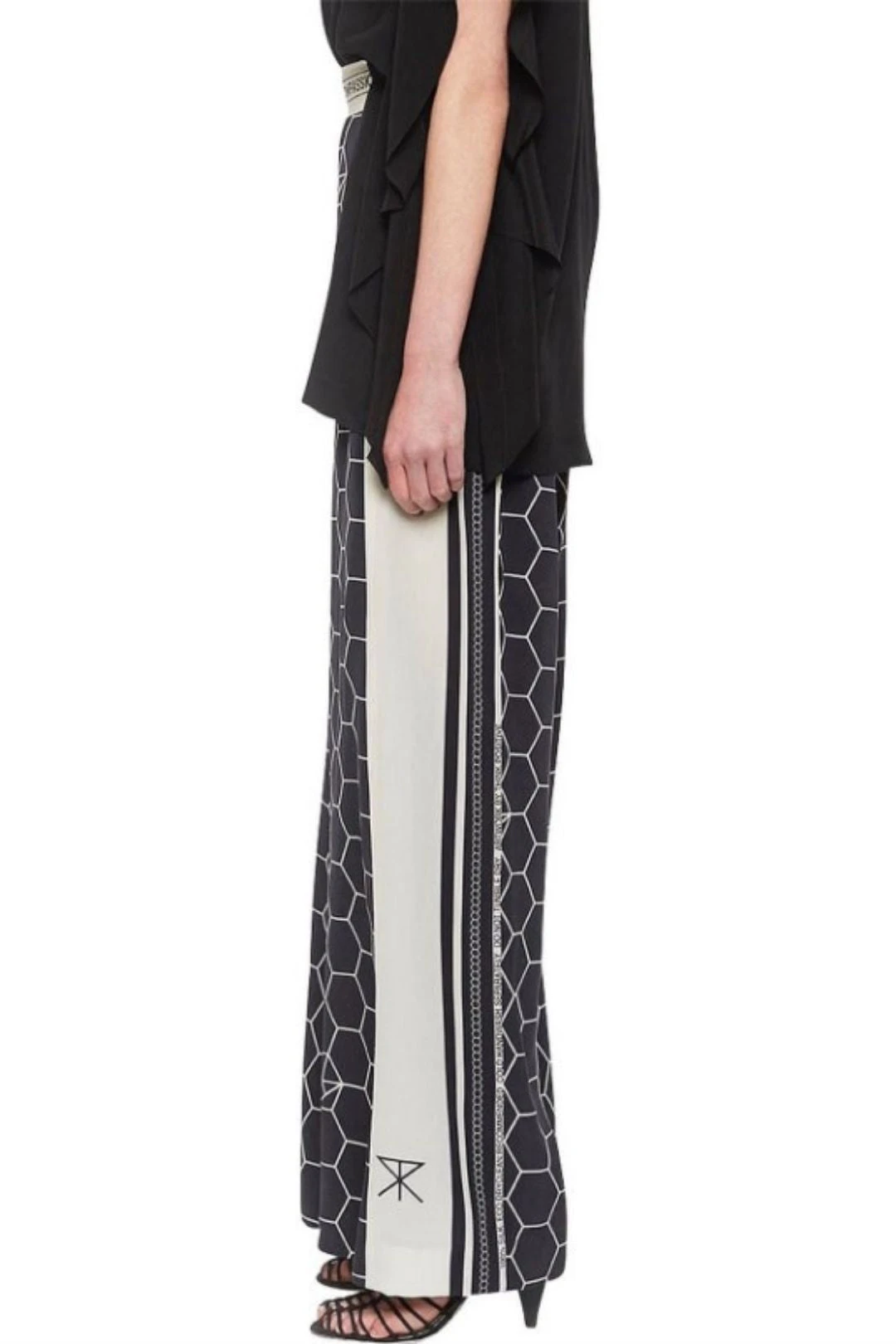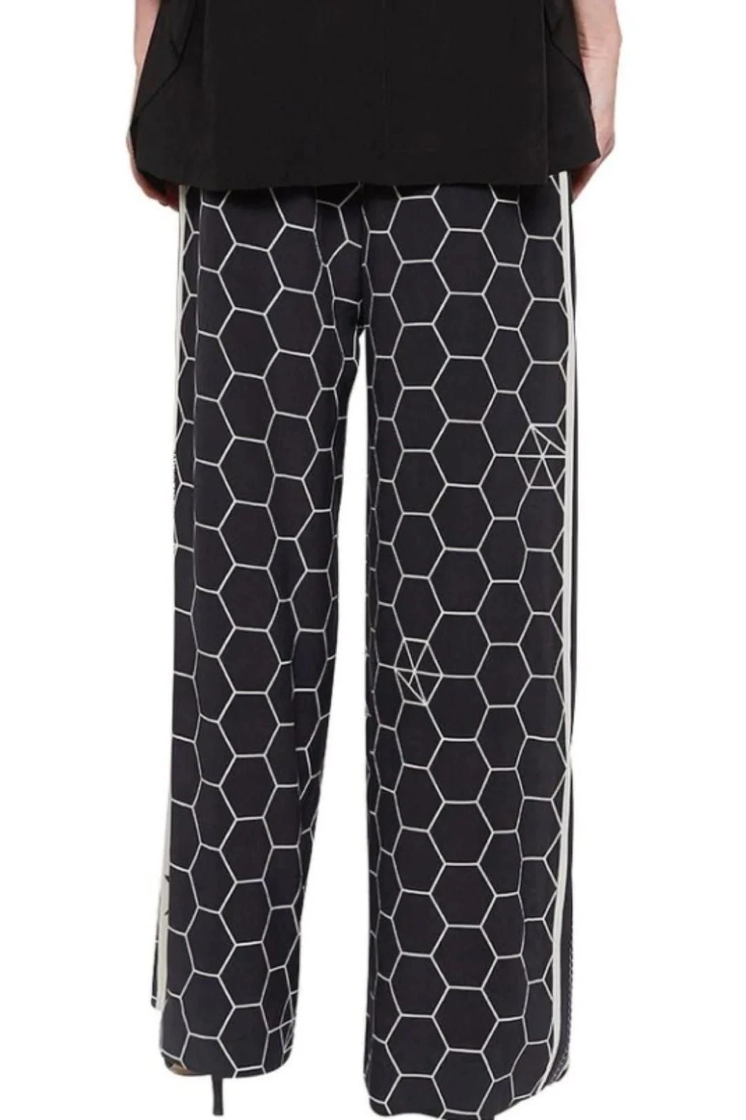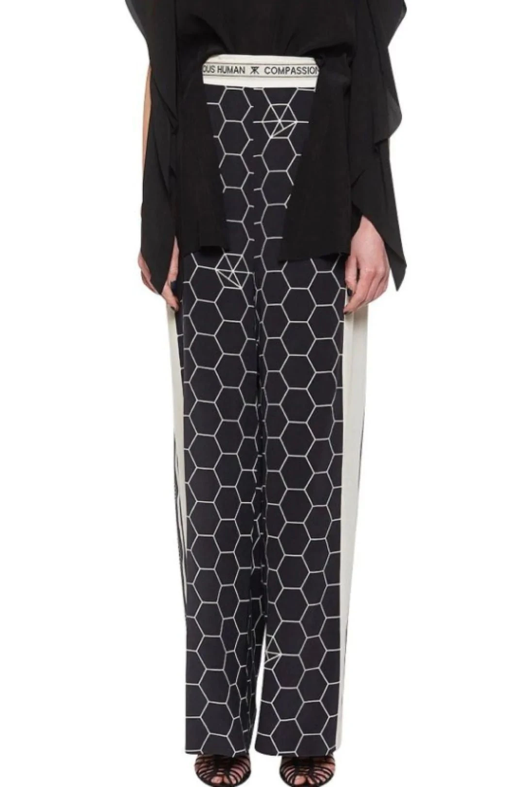 The Sacred Geo Pant by Kitx features a contrasting white elasticized waistband and a straight-leg silhouette. Wear these pants for a cocktail party or a work function.
